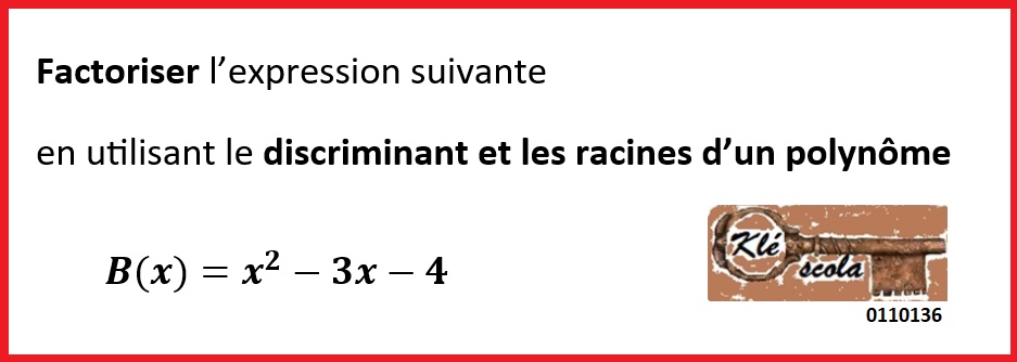 Factoriser polynôme 2nd degré avec discriminant racines 0110136