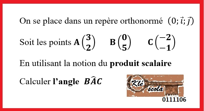 Géométrie 2D produit scalaire angle entre deux vecteurs 0111106