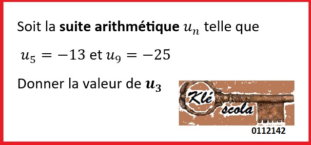 Suite arithmétique trouver terme à partir de 2 autres termes 0112142